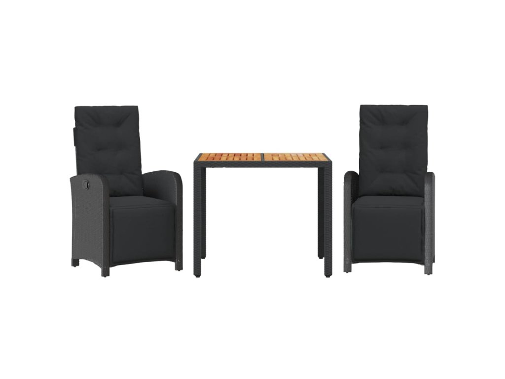 vidaXL 3-dielna bistro súprava s vankúšmi čierna polyratanová