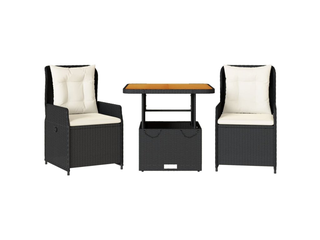 vidaXL 3-dielna bistro súprava s vankúšmi čierna polyratanová