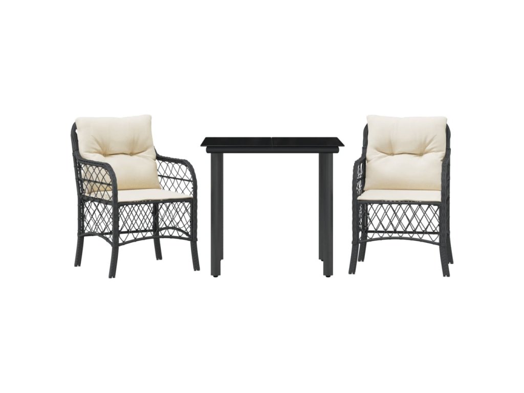 vidaXL 3-dielna bistro súprava s vankúšmi čierna polyratanová