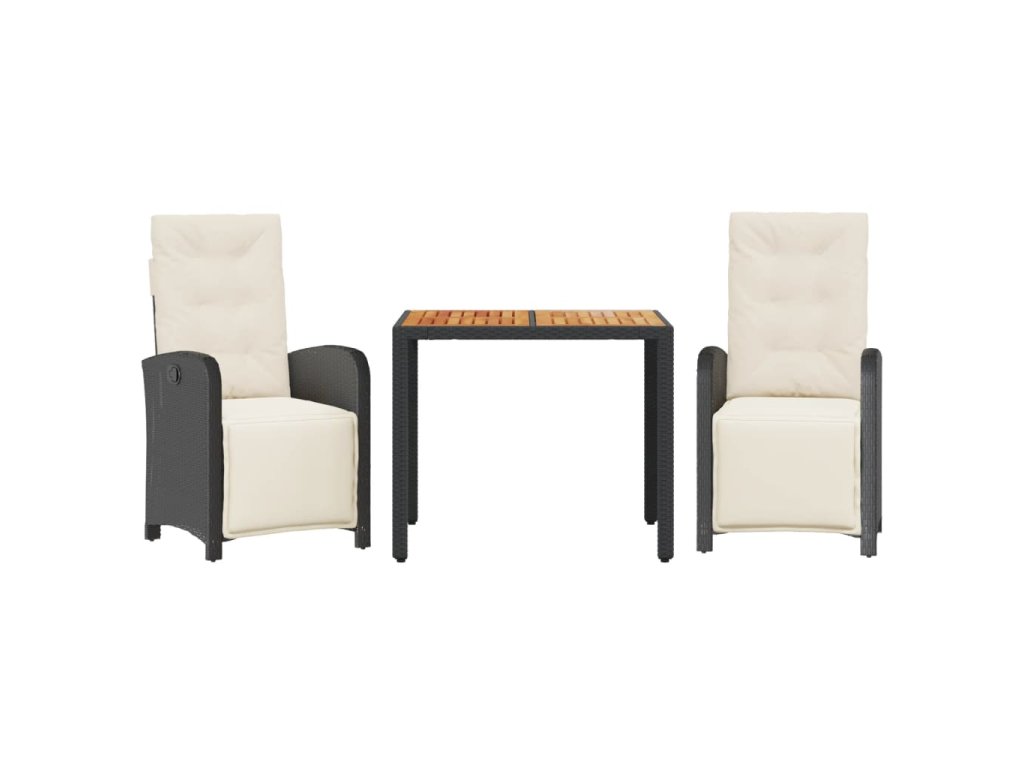 vidaXL 3-dielna bistro súprava s vankúšmi čierna polyratanová