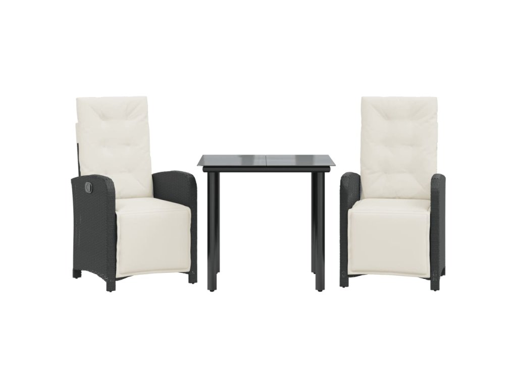 vidaXL 3-dielna bistro súprava s vankúšmi čierna polyratanová