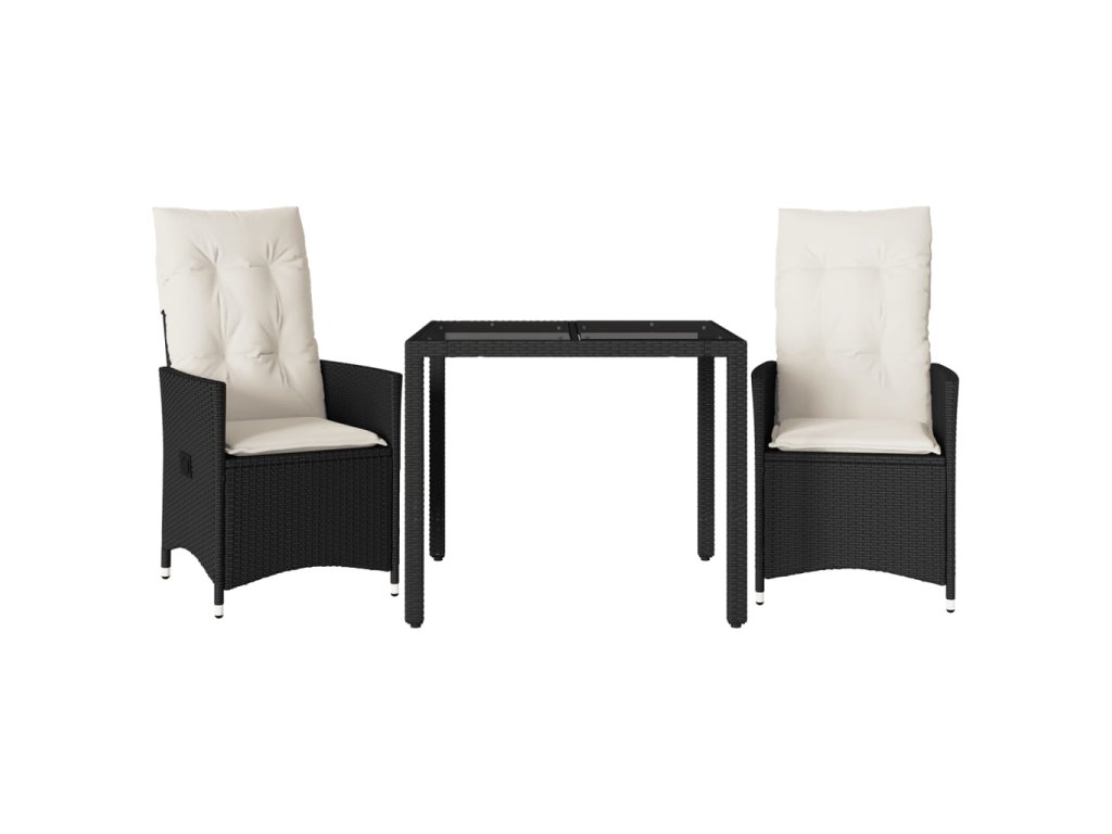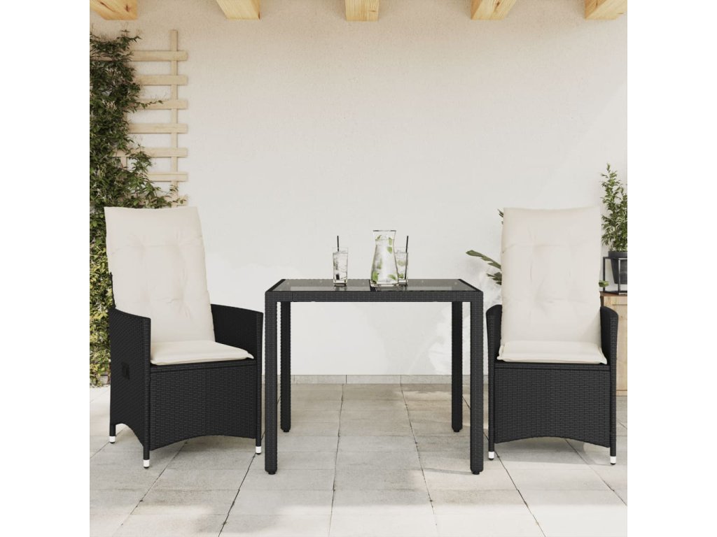 vidaXL 3-dielna bistro súprava s vankúšmi čierna polyratanová