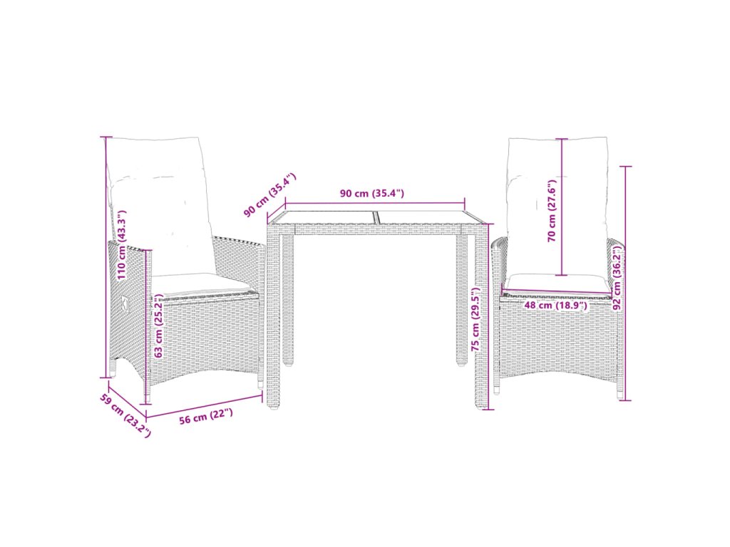 - Rozmery v polohe na sedenie: 56 x 59 x 92 cm (Š x H x V)
