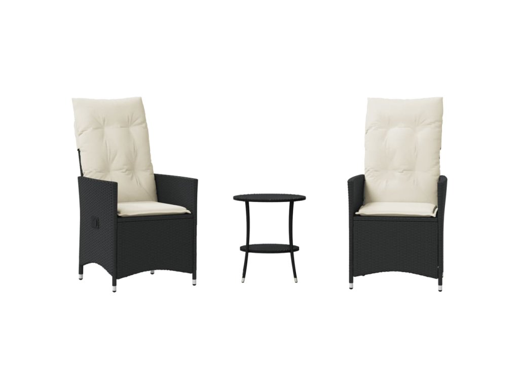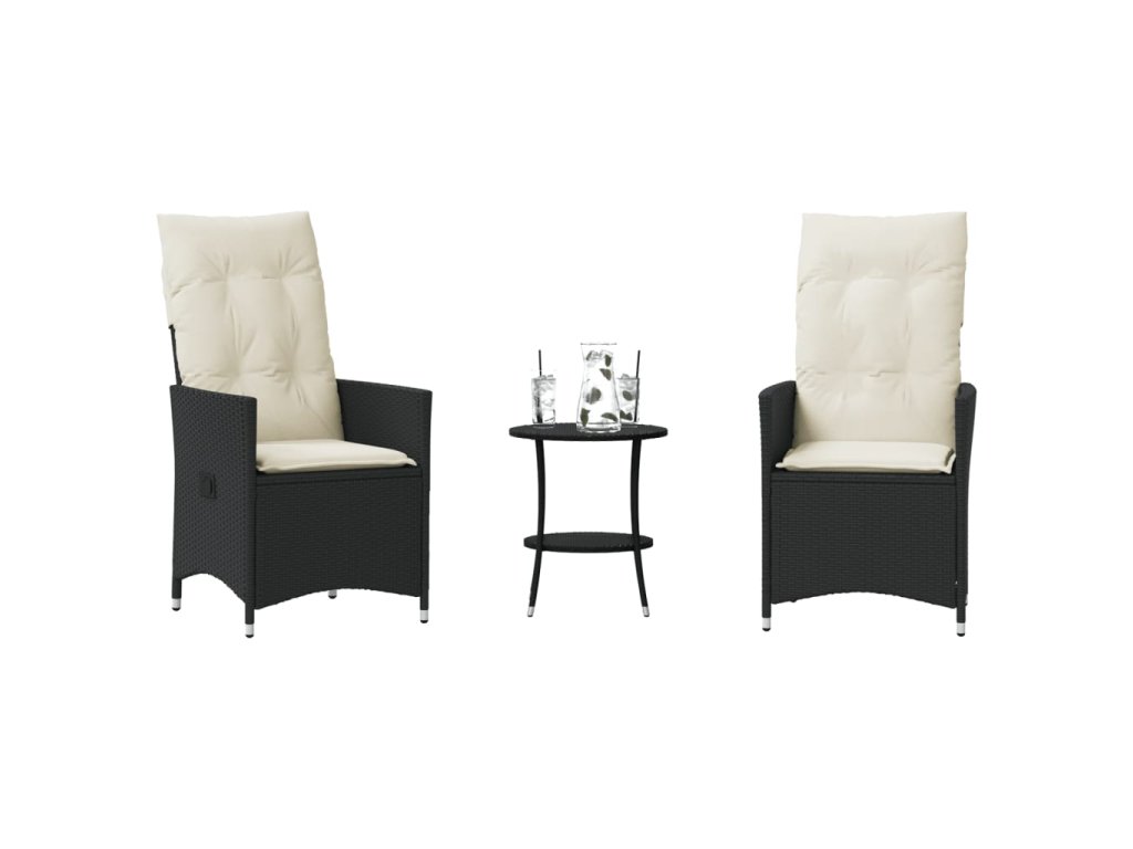 vidaXL 3-dielna bistro súprava s vankúšmi čierna polyratanová