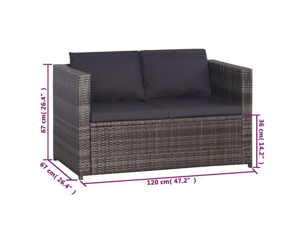 Záhradná sedacia súprava je vyrobená z PE ratanu, ktorý je odolný voči vode a poveternostným vplyvom, vďaka čomu sa ľahko čistí, je odolná a vhodná na každodenné používanie. Vonkajšia súprava pohoviek má pevný oceľový rám s práškovou povrchovou úpravou, ktorý je veľmi trvácny. Súprava je ľahká, takže sa dá jednoducho premiestniť. Súčasťou balenia sú aj veľmi pohodlné, nahusto vyčalúnené podložky na sedadlo a čierne vankúše, ktoré poskytujú optimálne pohodlie pri sedení. Naša modulárna polyratanová sedacia súprava sa dá bez problémov presúvať, aby sa hodila do akýchkoľvek priestorov!