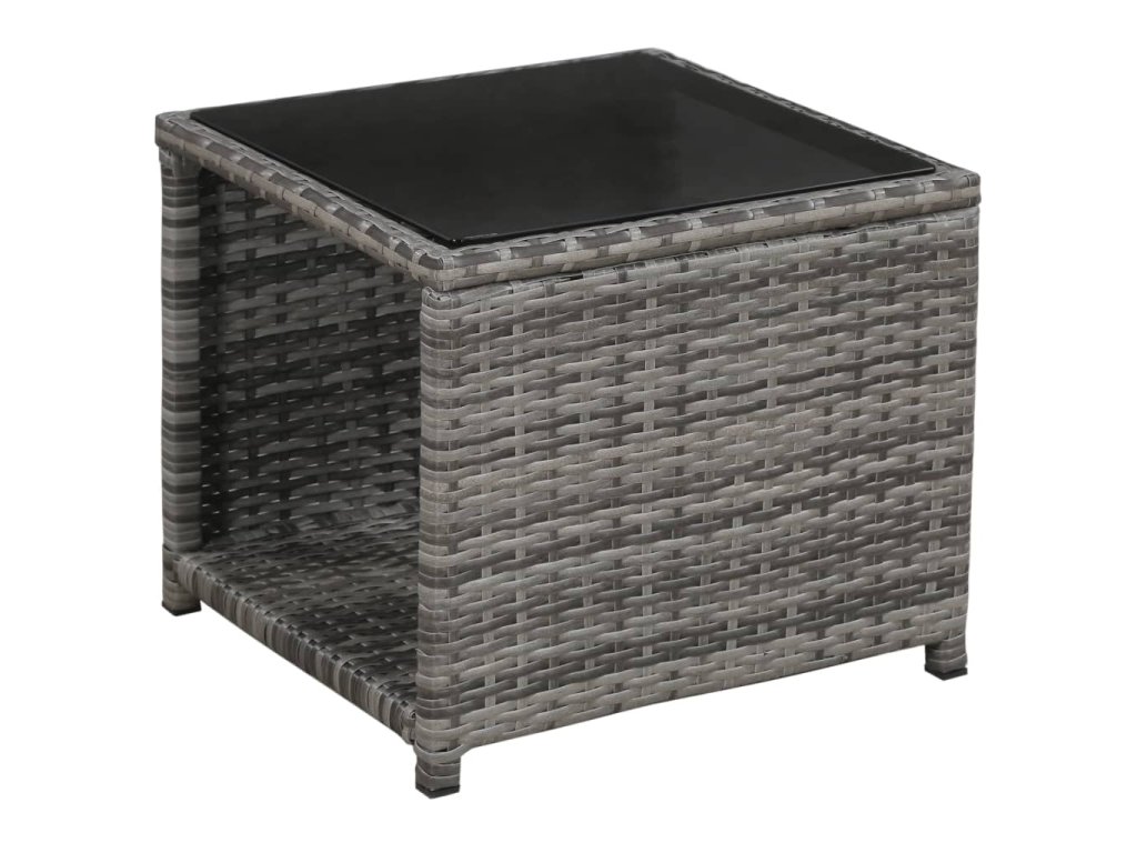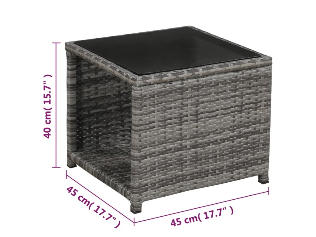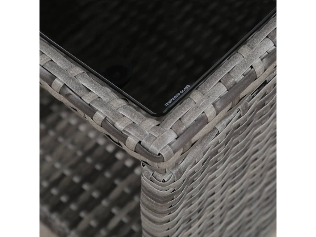 - Materiál: PE ratan + oceľový rám s práškovou povrchovou úpravou + doska stola zo skla