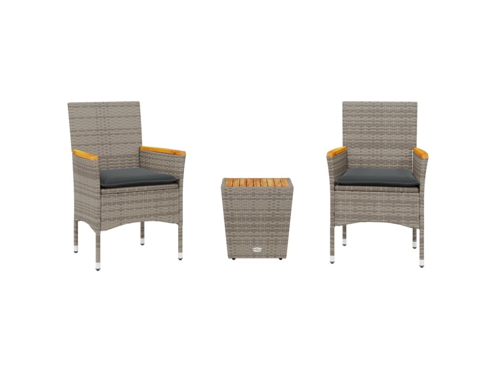 vidaXL 3-dielna bistro súprava s vankúšmi sivá polyratan a sklo