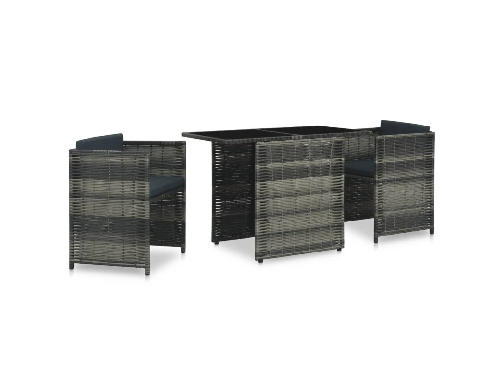vidaXL 3-dielna bistro súprava s vankúšmi sivá polyratanová