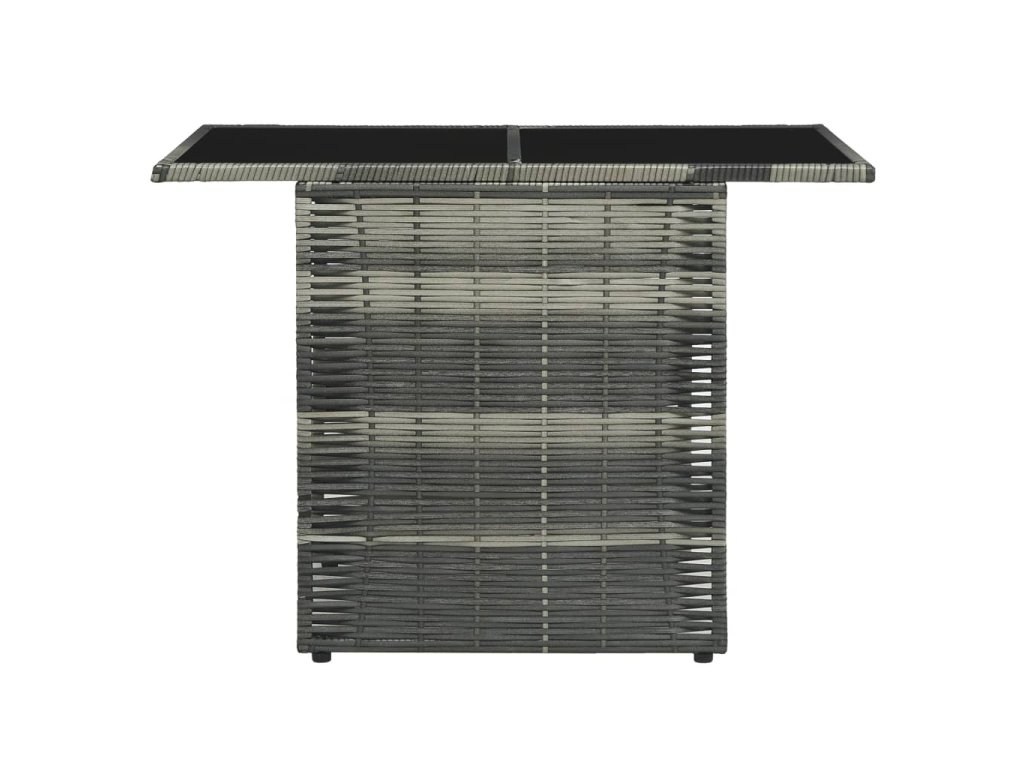 Táto jedálenská súprava je vyrobená z PE ratanu, pričom doska na stole je zo skla. Súprava je vodeodolná a odolná voči vplyvom počasia. Jednoducho sa čistí, je trvácna a vhodná pre každodenné použitie. Oceľový rám s práškovým nástrekom robí stôl a stoličky veľmi robustnými a odolnými. Vďaka ľahkej konštrukcii sa všetky časti súpravy jednoducho presúvajú. Keď sa nepoužíva, stoličky sa môžu umiestniť pod stôl. Hrubé odnímateľné vankúše sú veľmi pohodlné. Poťahy so zipsmi sa dajú ľahko odstrániť a vyčistiť.