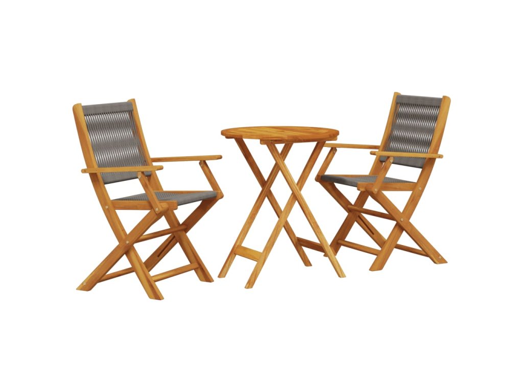 vidaXL 3-dielna bistro súprava sivá polypropylén+drevený masív