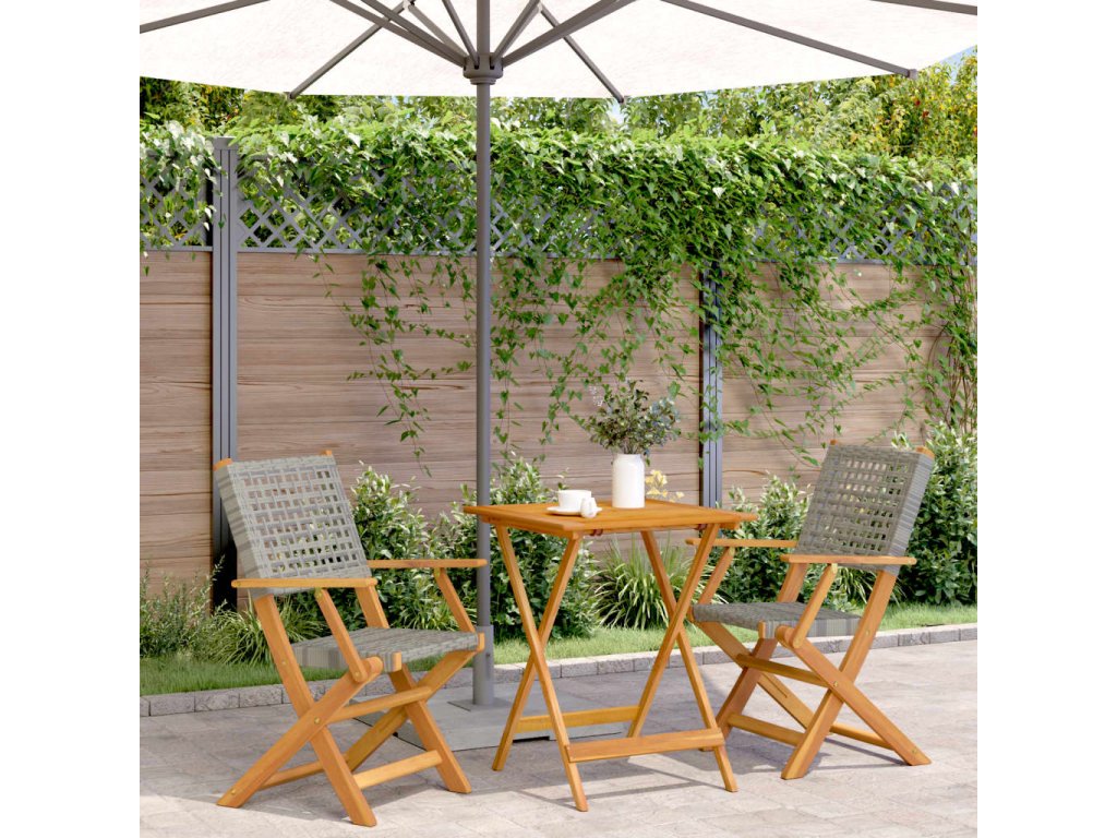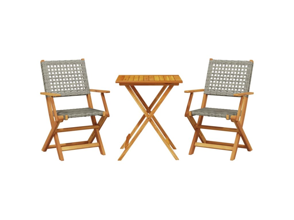 vidaXL 3-dielna bistro súprava sivá polyratan+drevený masív