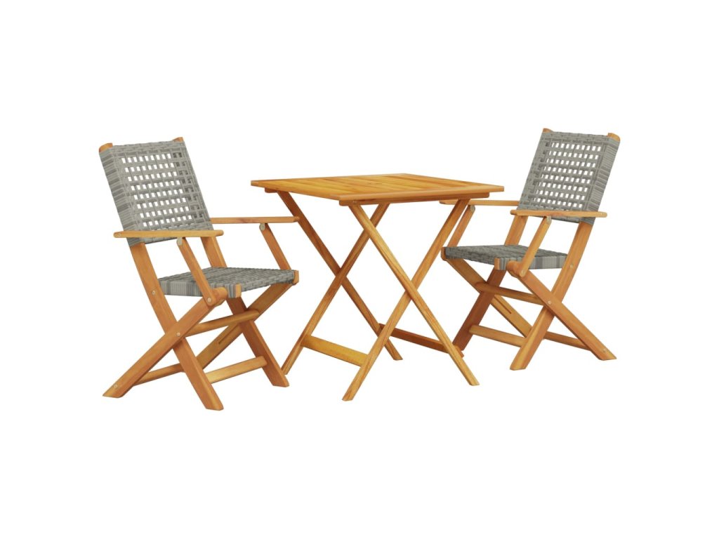 vidaXL 3-dielna bistro súprava sivá polyratan+drevený masív