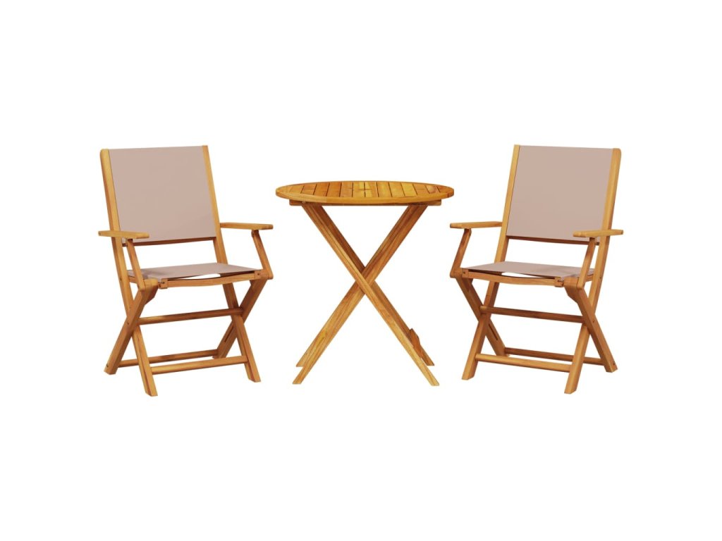 vidaXL 3-dielna bistro súprava sivohnedá látka a masívne drevo