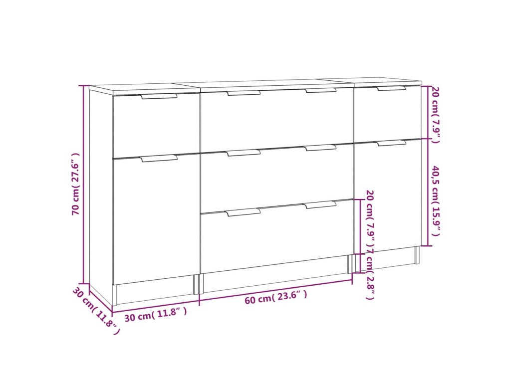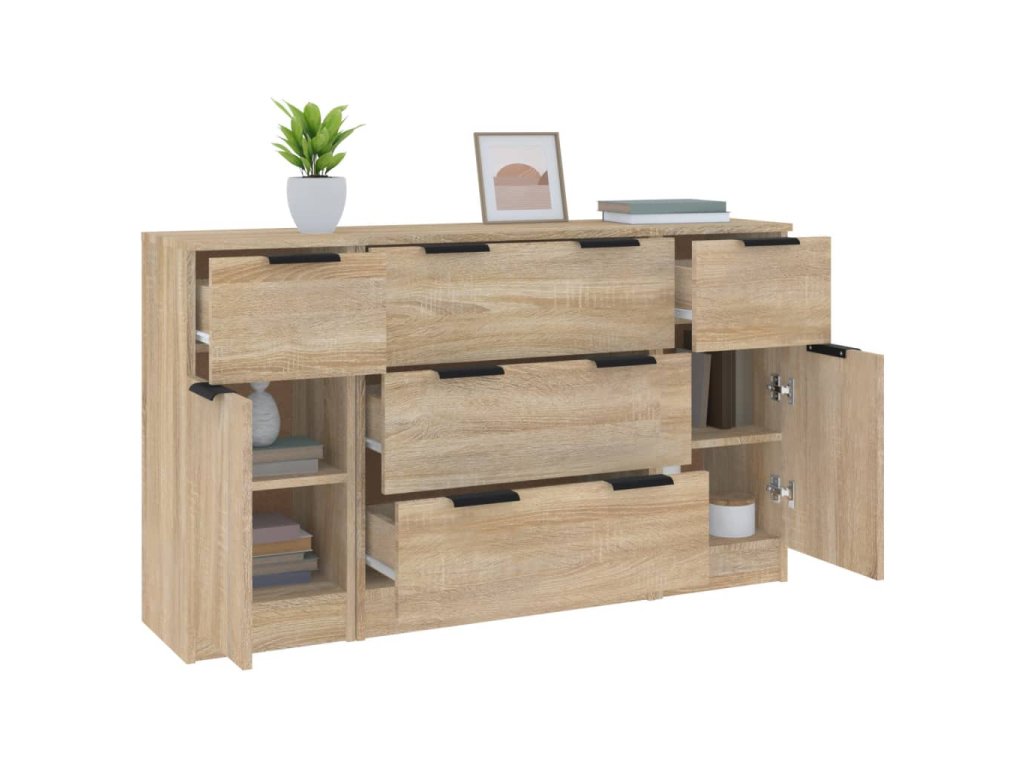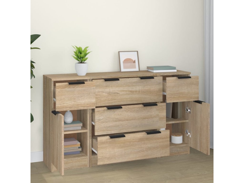 vidaXL 3-dielna sada komôd dub sonoma spracované drevo