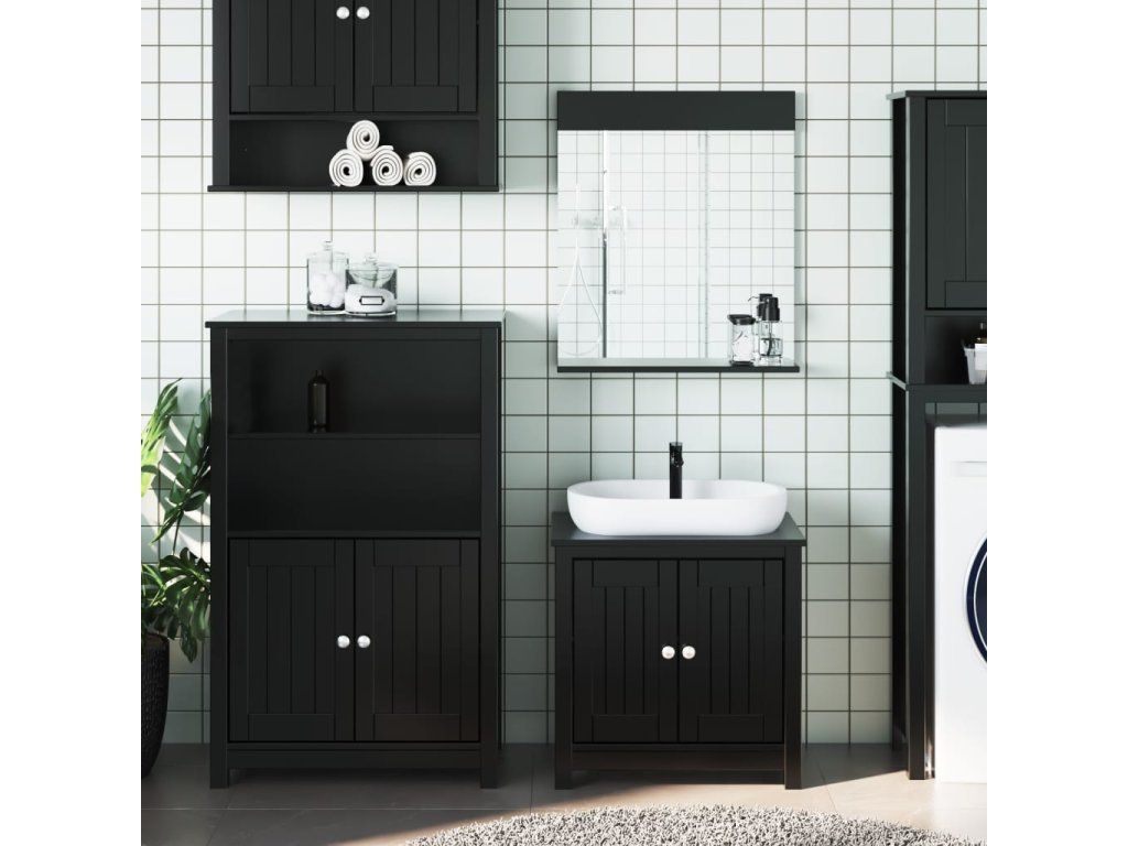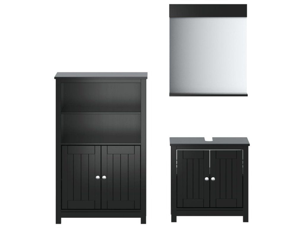 vidaXL 3-dielna sada kúpeľňového nábytku BERG čierna masívna borovica