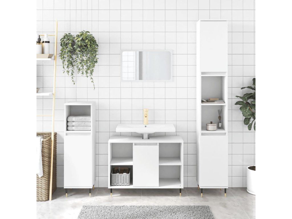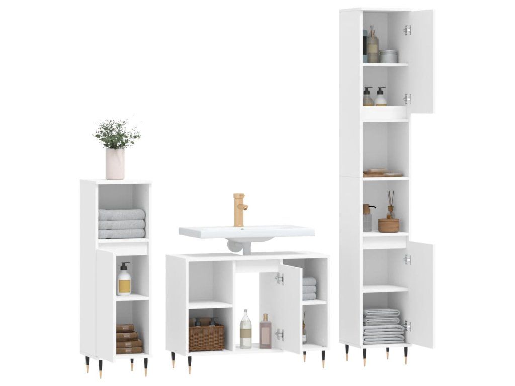 vidaXL 3-dielna sada kúpeľňového nábytku biela kompozitné drevo