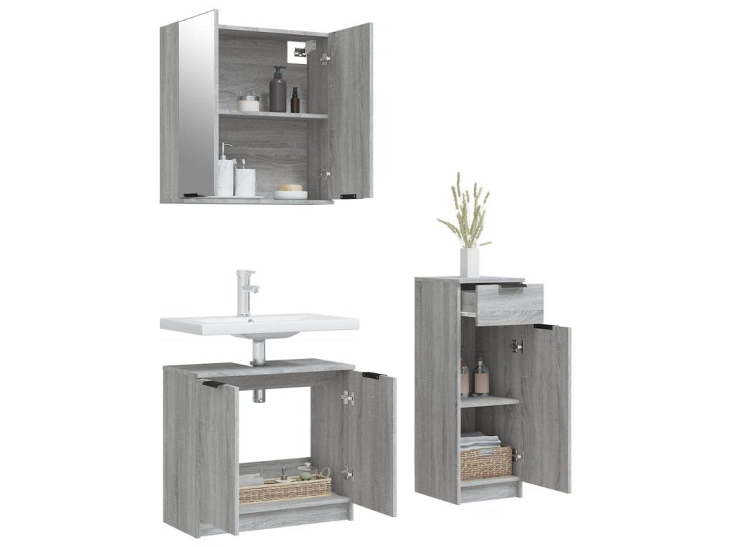 vidaXL 3-dielna sada kúpeľňových skriniek sivá sonoma spracované drevo