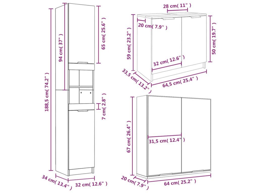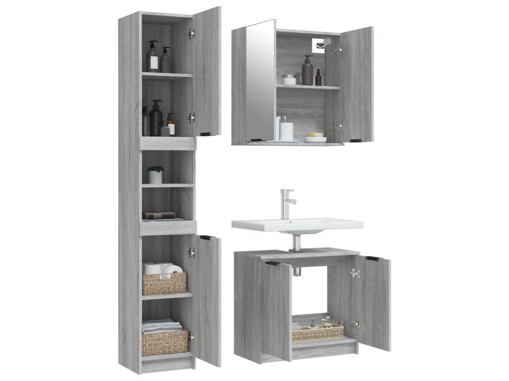 vidaXL 3-dielna sada kúpeľňových skriniek sivá sonoma spracované drevo