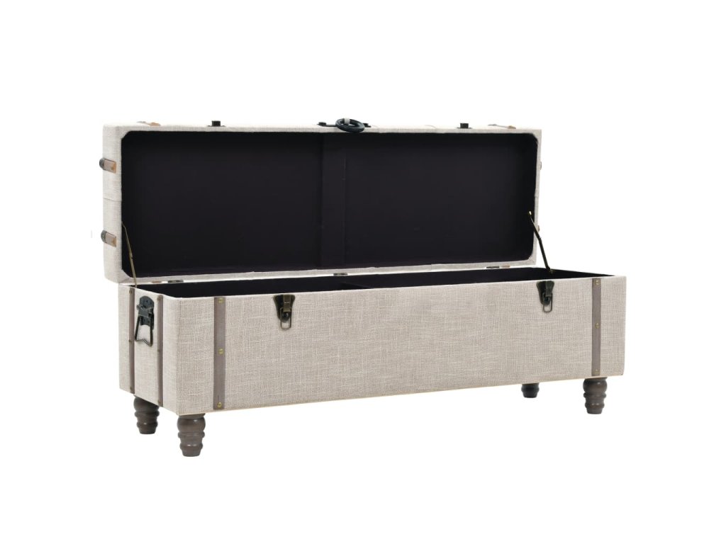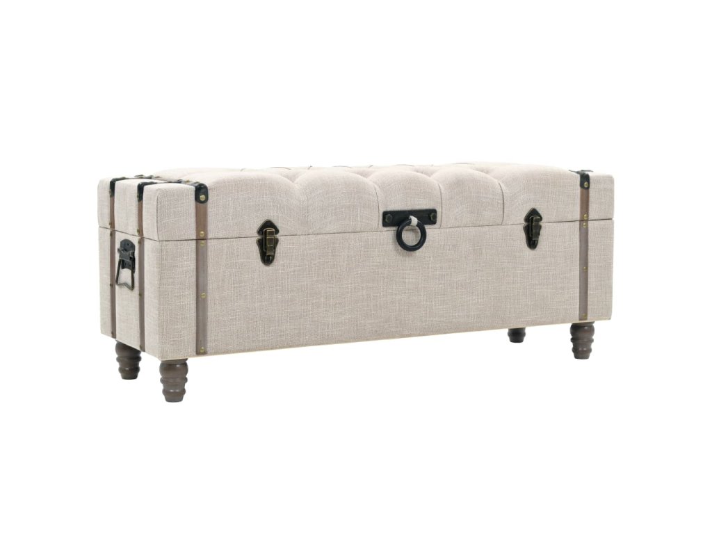 Úložné boxy sú vyrobené z masívneho jedľového dreva. Majú polstrované sedadlá, ktoré sú čalúnené modernou textíliou a robustné oceľové nohy. Poskytujú dostatok priestoru na uloženie rôznych predmetov, ktoré potrebujete mať na dosah ruky. Ak je to potrebné, dve malé taburetky môžu byť uložené vo vnútri väčšieho boxu. Vďaka trvácnym rúčkam sa dajú lavičky jednoducho presunúť a umiestniť do každej miestnosti. Balenie obsahuje 3 úložné lavice.