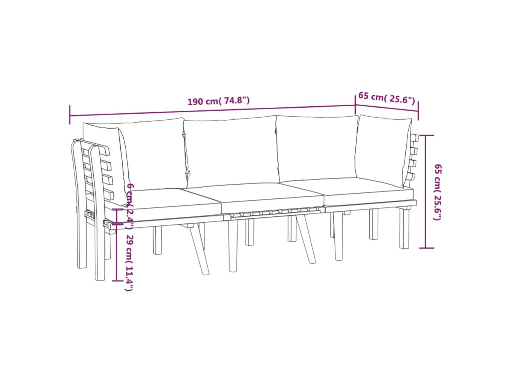Súprava vonkajšieho nábytku je vyrobená z masívneho akáciového dreva a je odolná voči poveternostným vplyvom a má vysokú životnosť. V kombinácii s hrubo čalúnenými vankúšmi poskytuje táto sedacia súprava maximálne pohodlie. Môžete ju skombinovať s inými modulárnymi segmentmi a vytvoriť si tak svoje vlastné osobné záhradné sedacie súpravy!