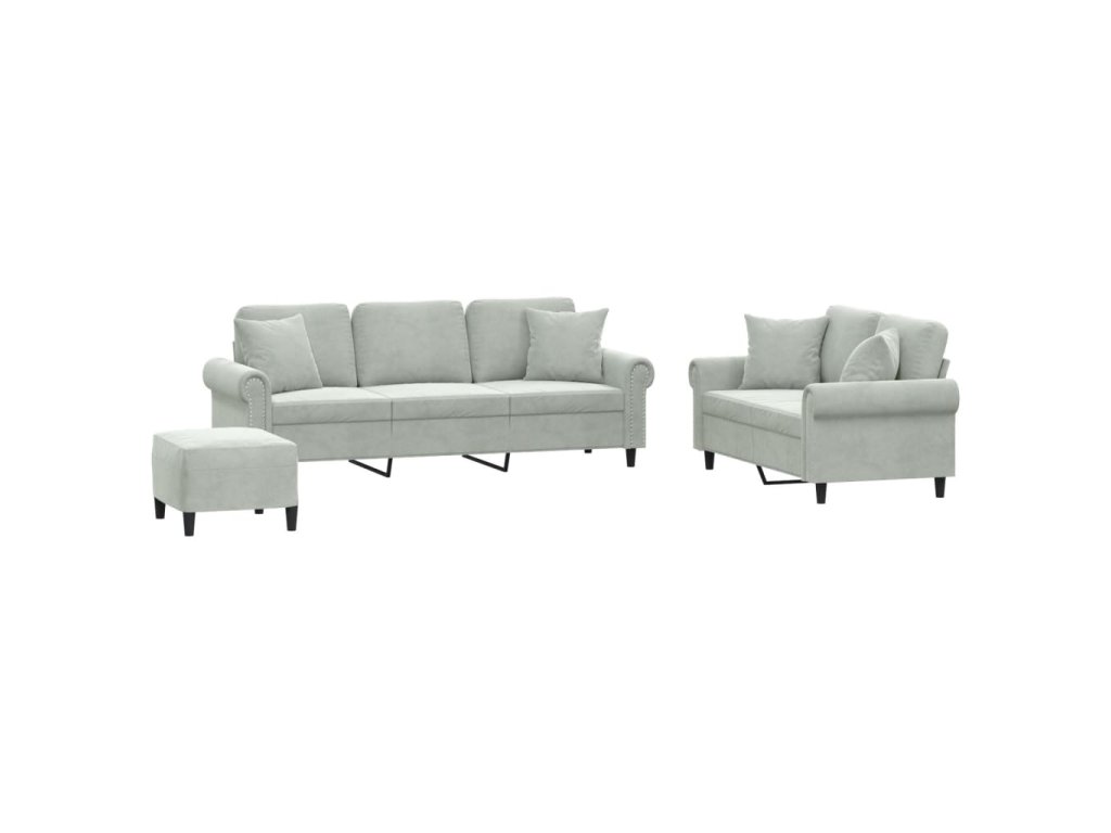 vidaXL 3-dielna sedacia súprava s vankúšmi bledosivá zamat