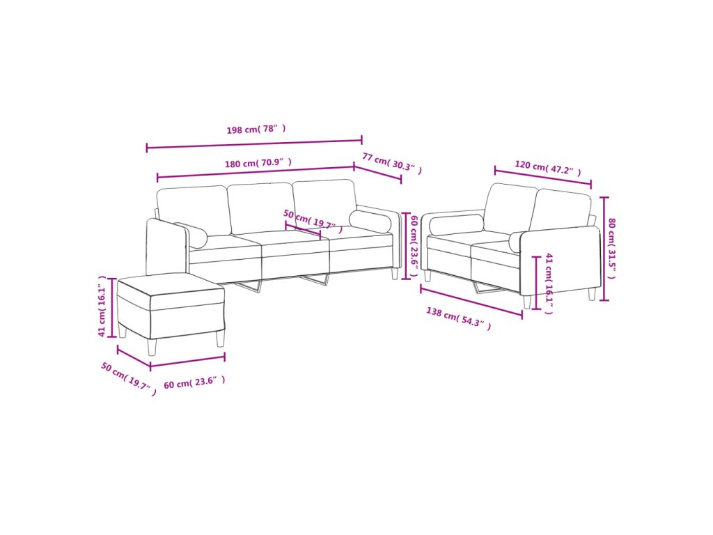 vidaXL 3-dielna sedacia súprava s vankúšmi bledosivá zamat