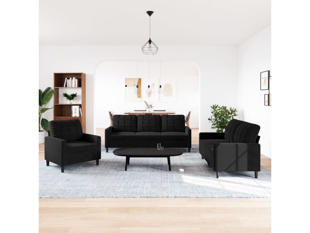 vidaXL 3-dielna sedacia súprava s vankúšmi čierna zamat