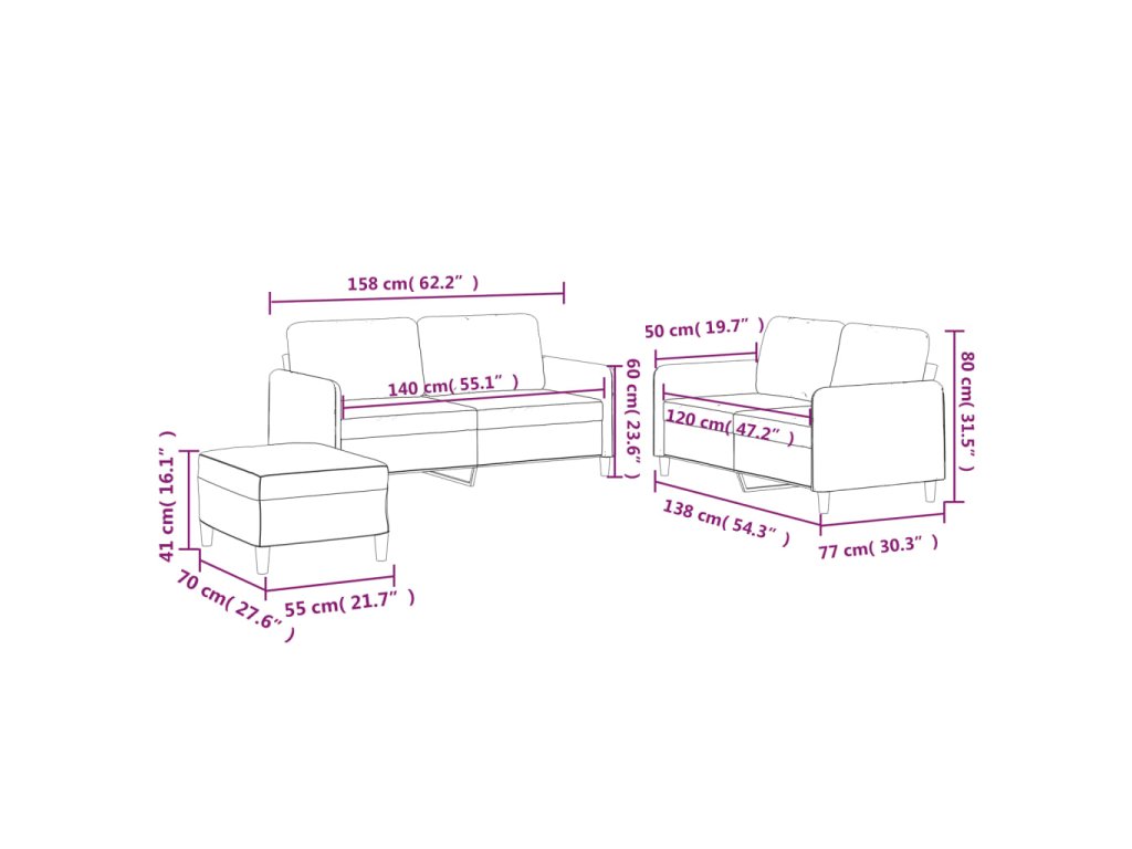 - Celkové rozmery: 138 x 77 x 80 cm (Š x H x V)