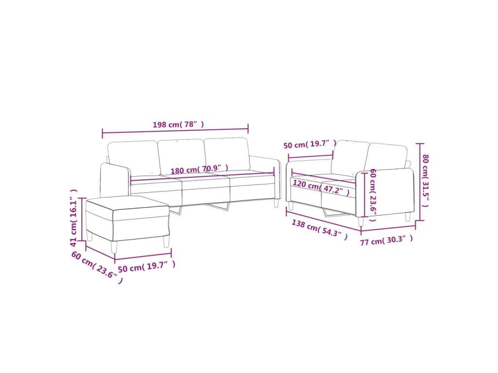 - Celkové rozmery: 198 x 77 x 80 cm (Š x H x V)