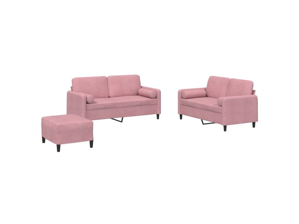 vidaXL 3-dielna sedacia súprava s vankúšmi ružová zamat