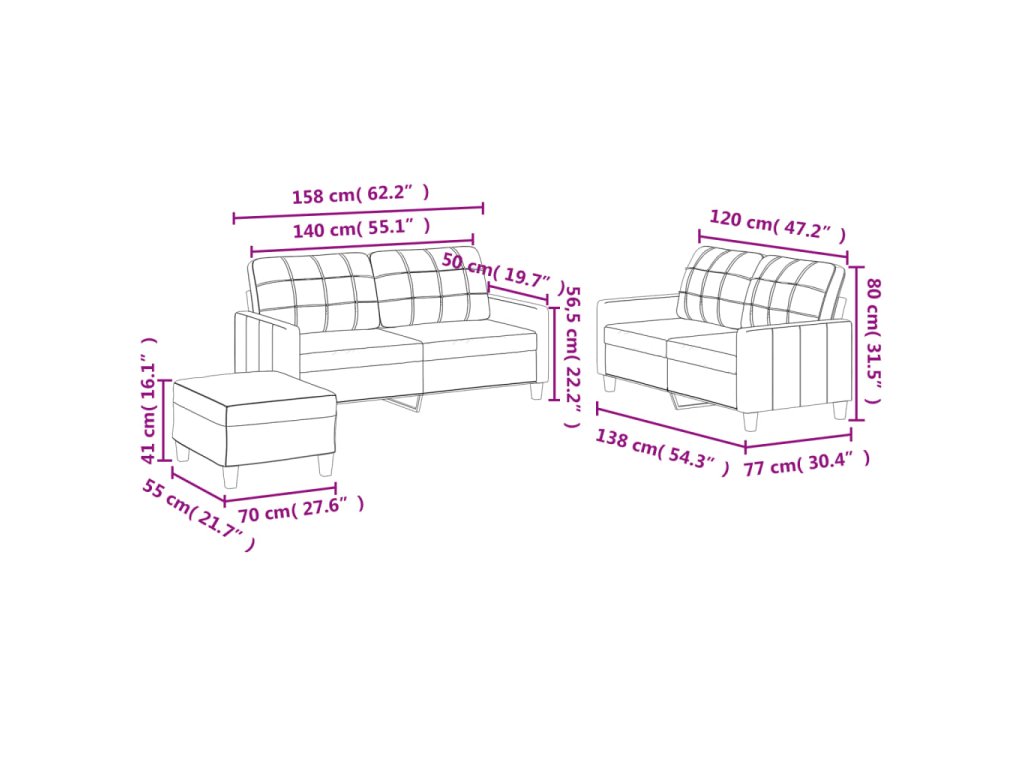 vidaXL 3-dielna sedacia súprava s vankúšmi sivá umelá koža