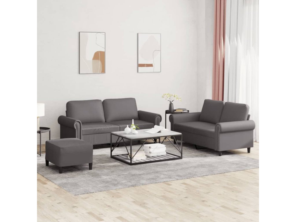 vidaXL 3-dielna sedacia súprava s vankúšmi sivá umelá koža