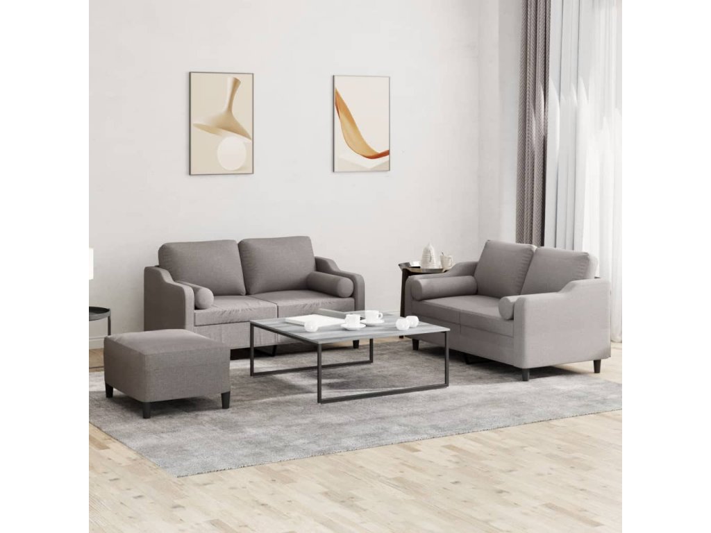 vidaXL 3-dielna sedacia súprava s vankúšmi sivohnedá látka