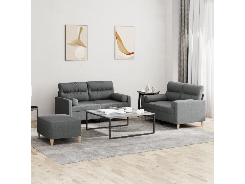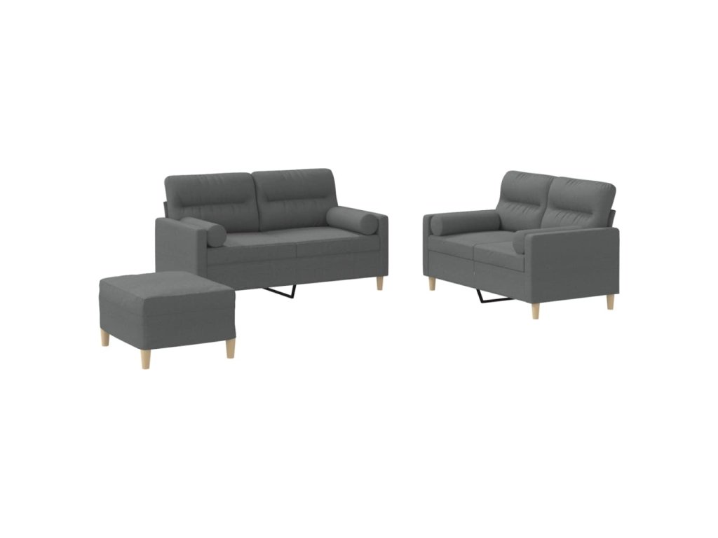 vidaXL 3-dielna sedacia súprava s vankúšmi tmavosivá látka
