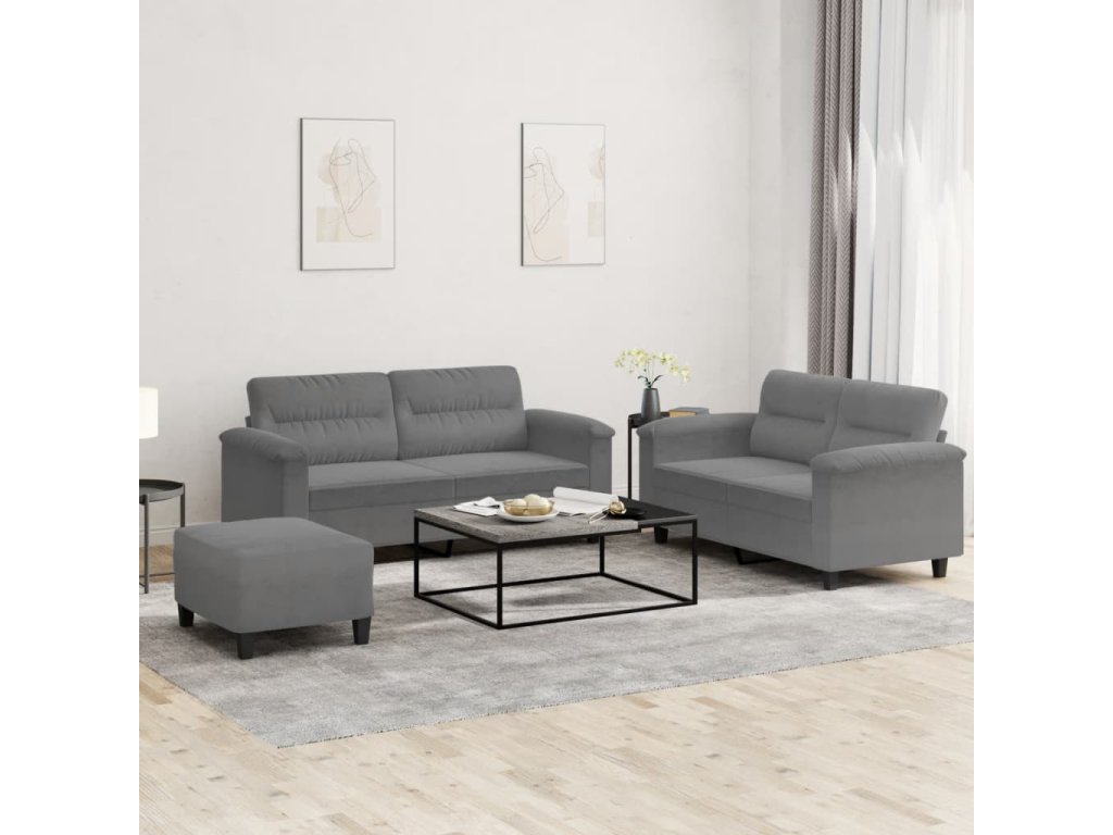 vidaXL 3-dielna sedacia súprava s vankúšmi tmavosivá mikrovlákno