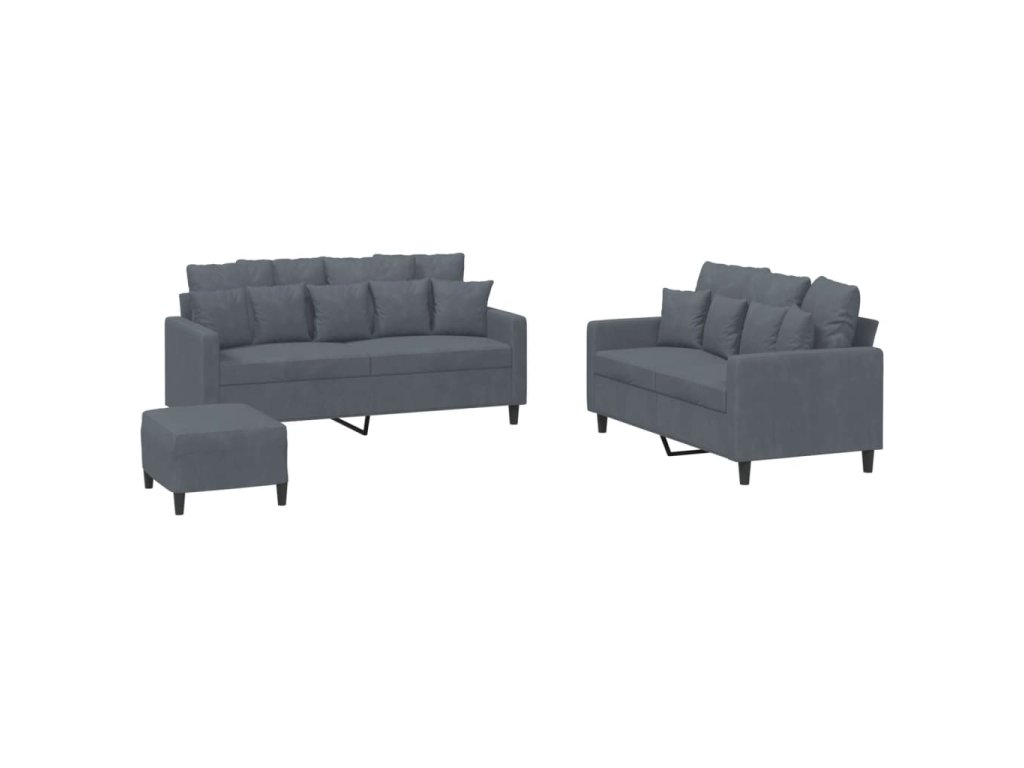 vidaXL 3-dielna sedacia súprava s vankúšmi tmavosivá zamat