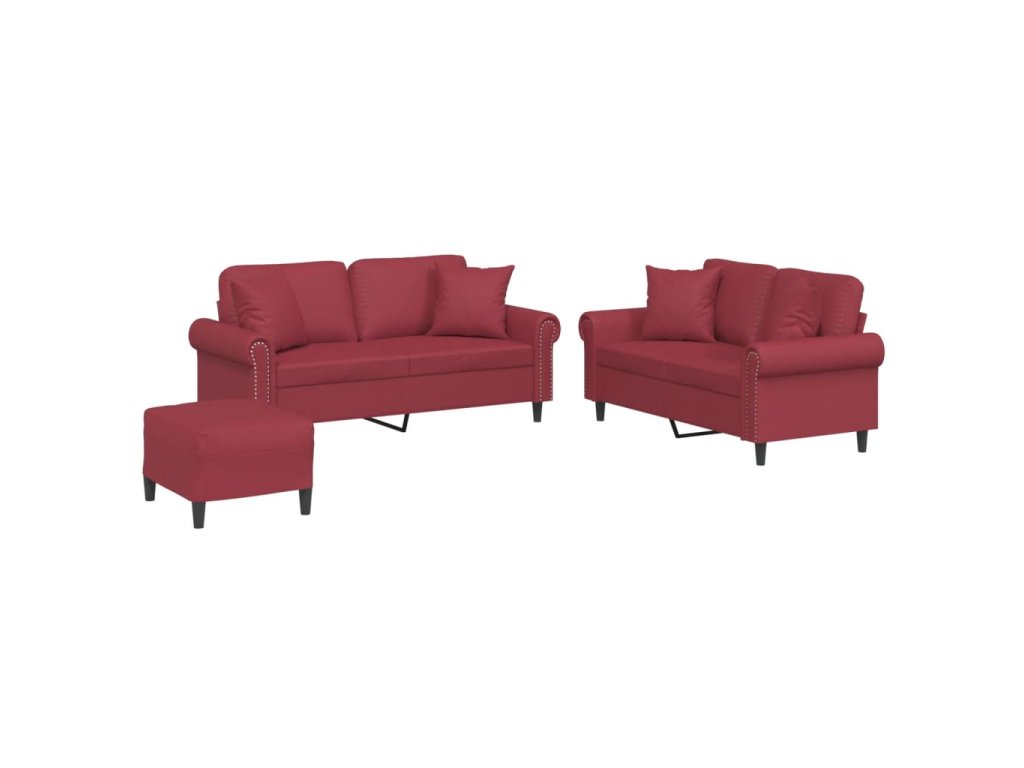 vidaXL 3-dielna sedacia súprava s vankúšmi vínovo červená umelá koža