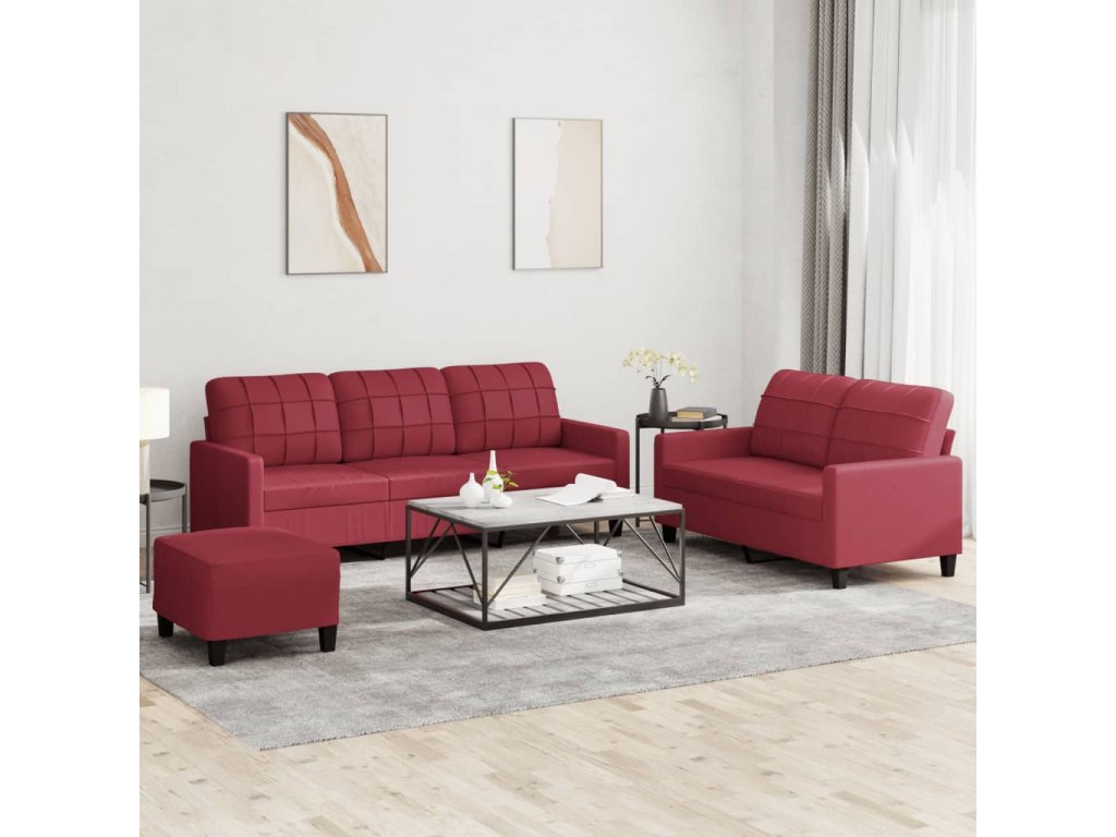 vidaXL 3-dielna sedacia súprava s vankúšmi vínovočervená umelá koža