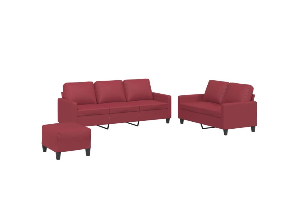 vidaXL 3-dielna sedacia súprava s vankúšmi vínovočervená umelá koža