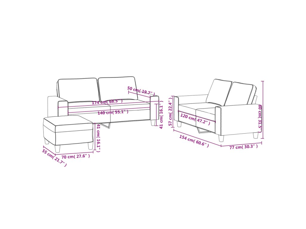 - Celkové rozmery: 174 x 77 x 80 cm (Š x H x V)