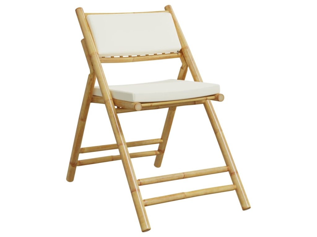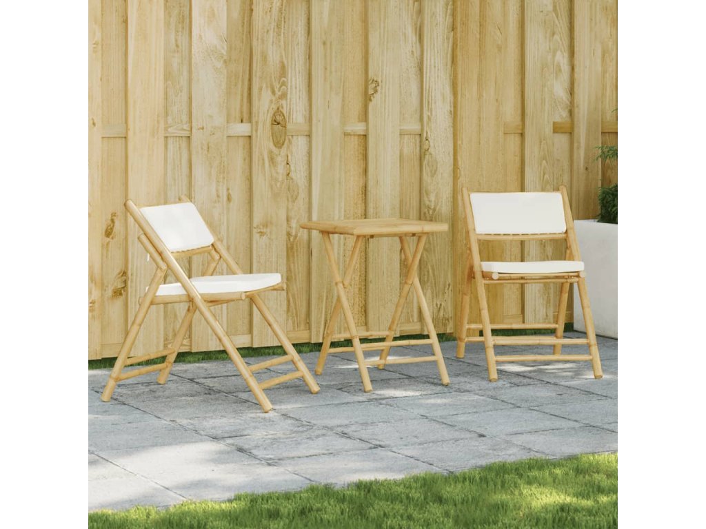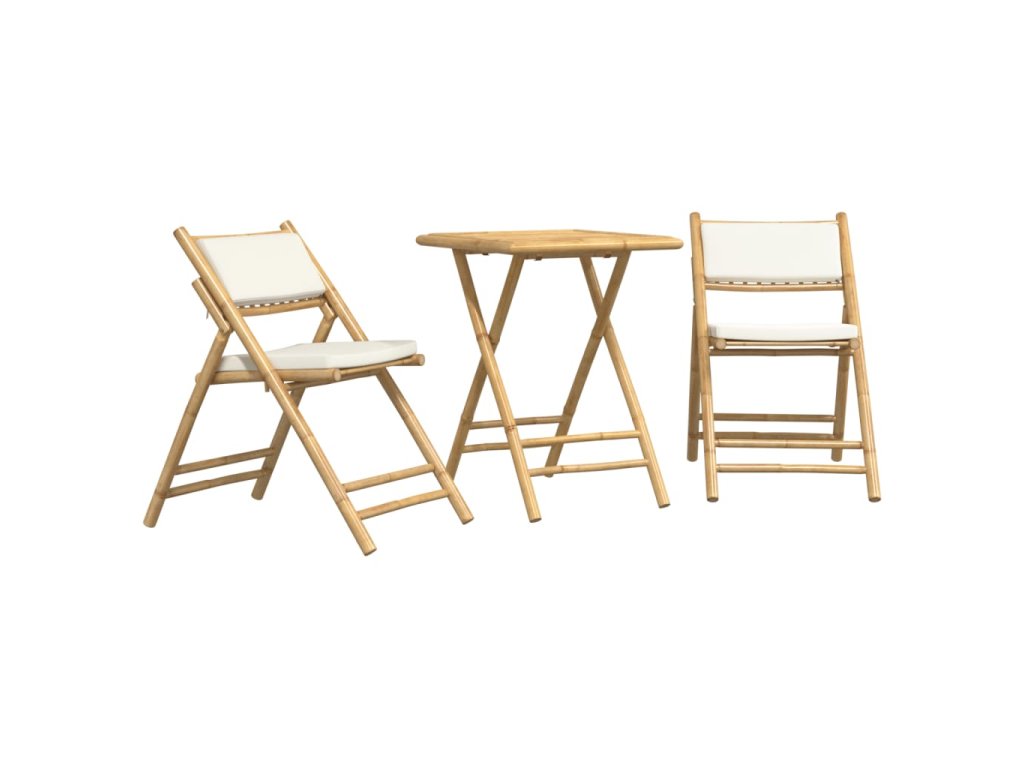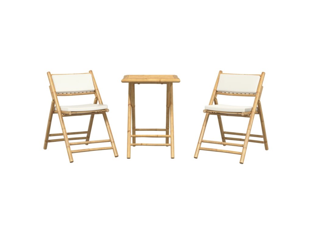 vidaXL 3-dielna skladacia bistro súprava krémovobiele vankúše bambus
