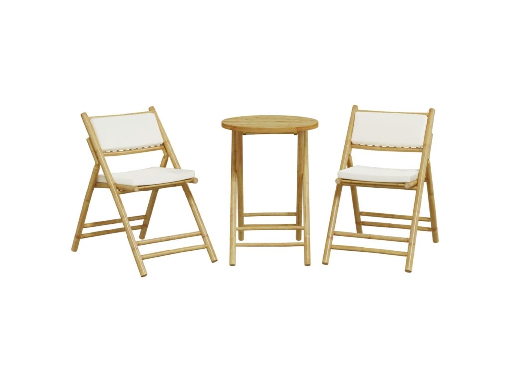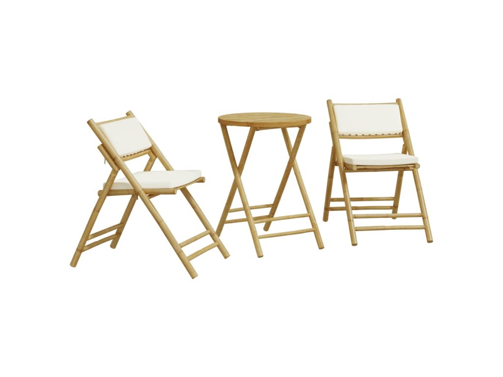vidaXL 3-dielna skladacia bistro súprava krémovobiele vankúše bambus