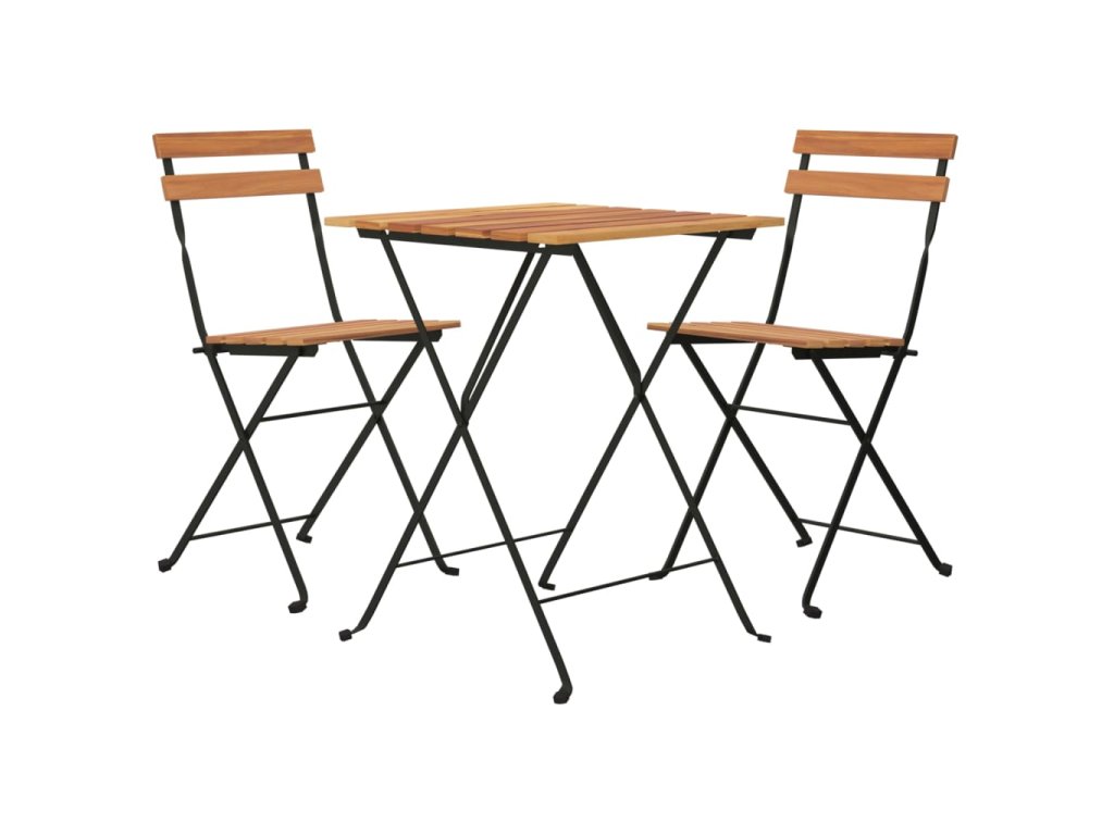 vidaXL 3-dielna skladacia bistro súprava masívny tík a oceľ