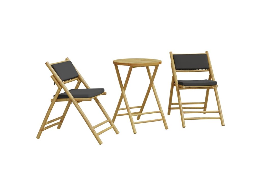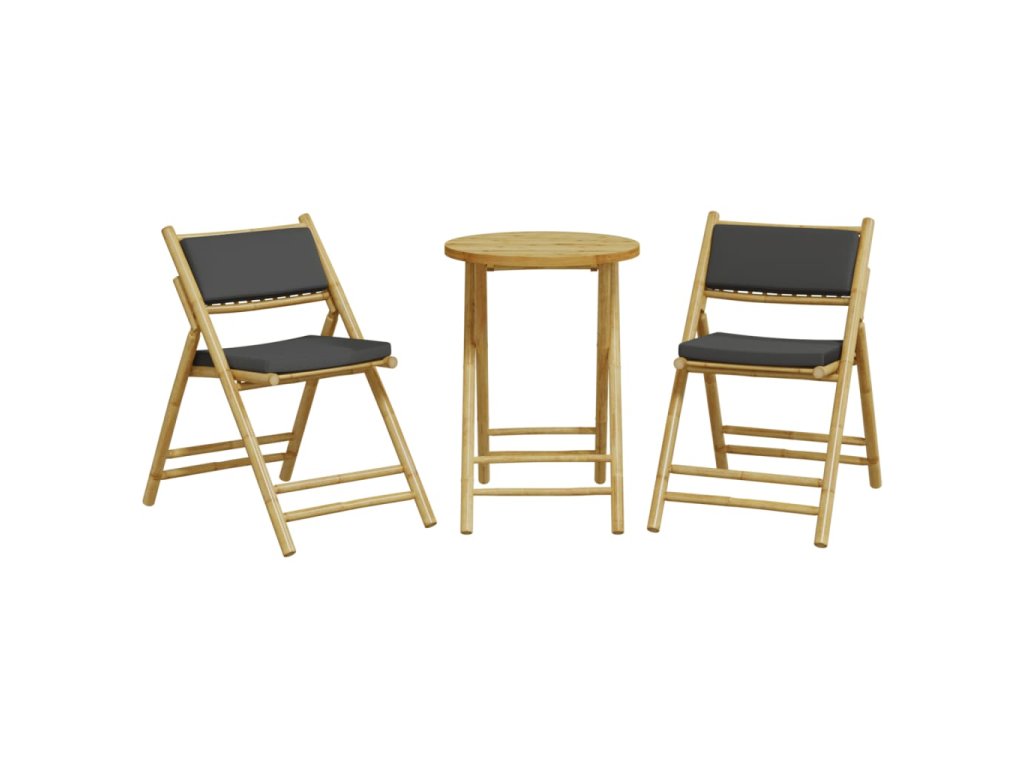 vidaXL 3-dielna skladacia bistro súprava tmavosivé vankúše bambus