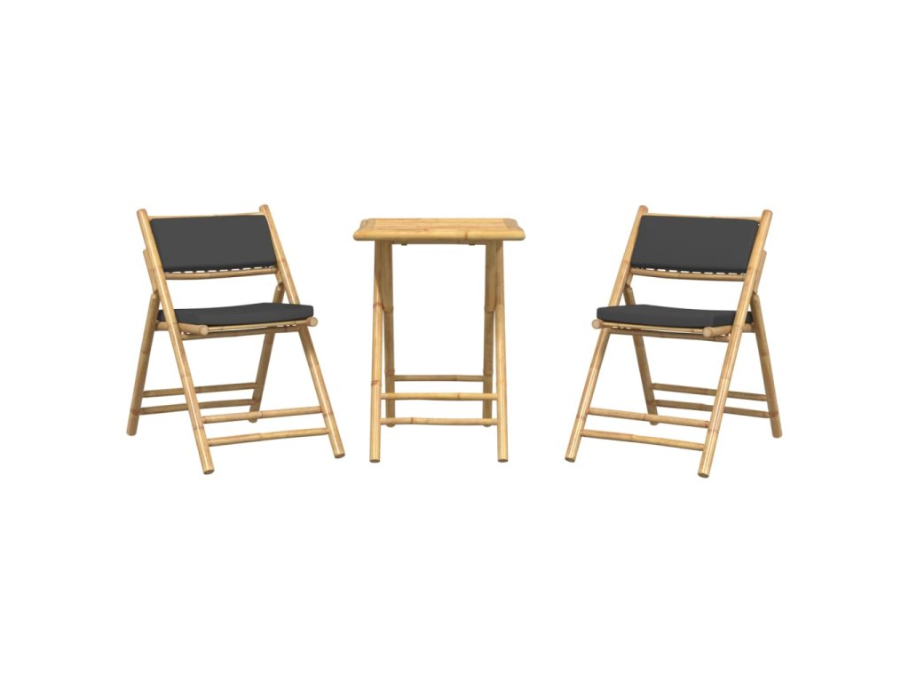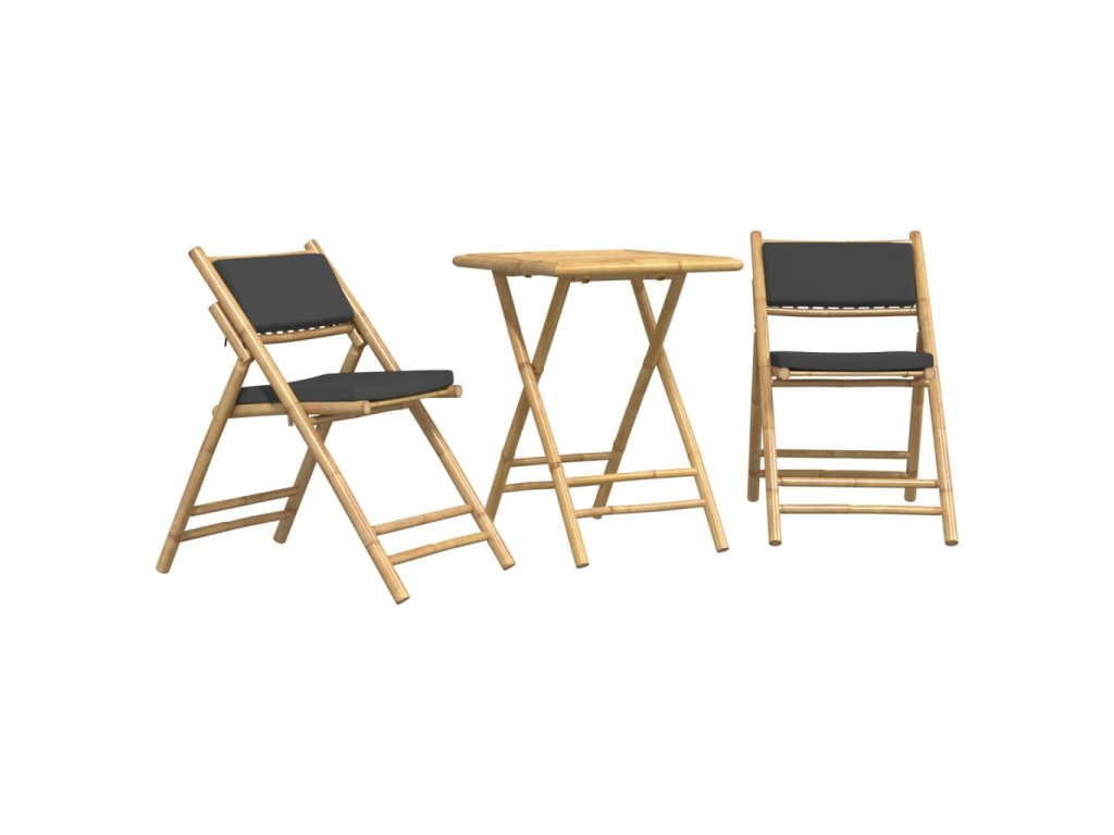 vidaXL 3-dielna skladacia bistro súprava tmavosivé vankúše bambus