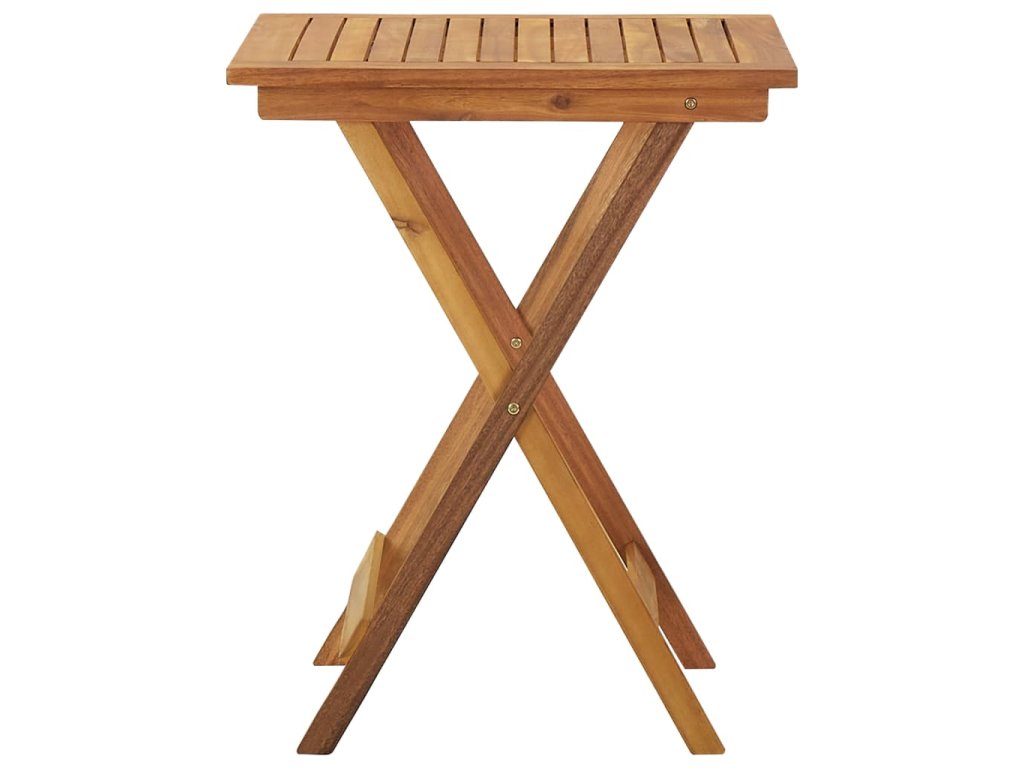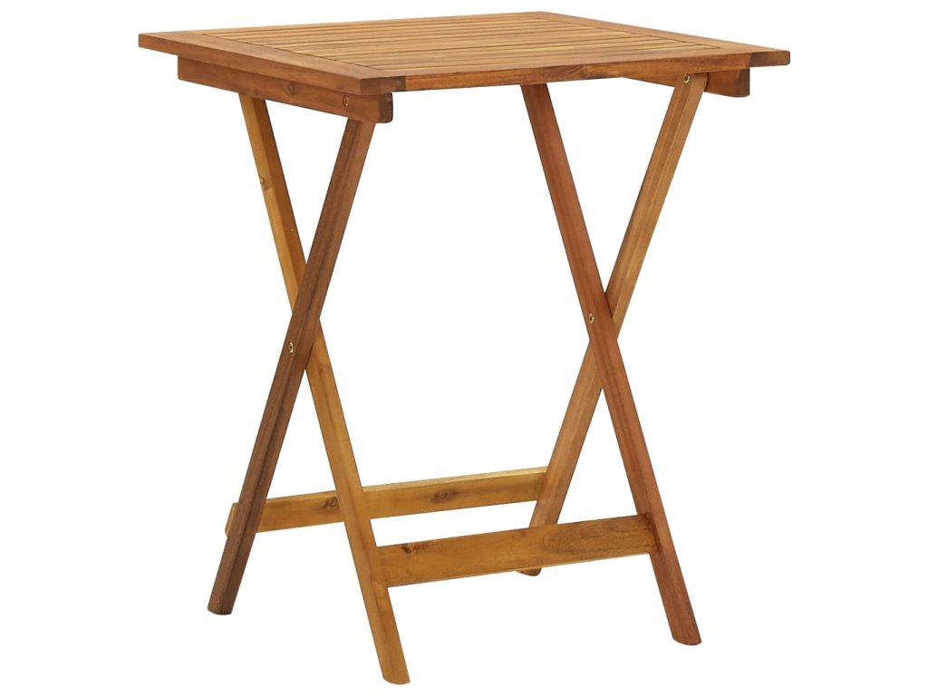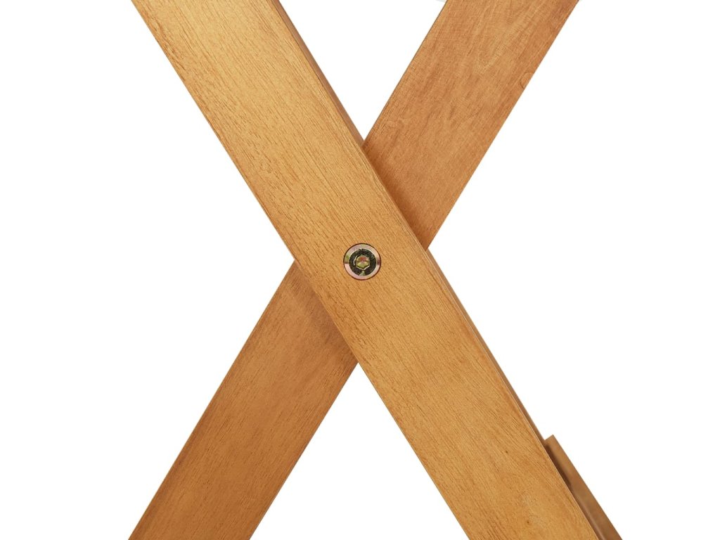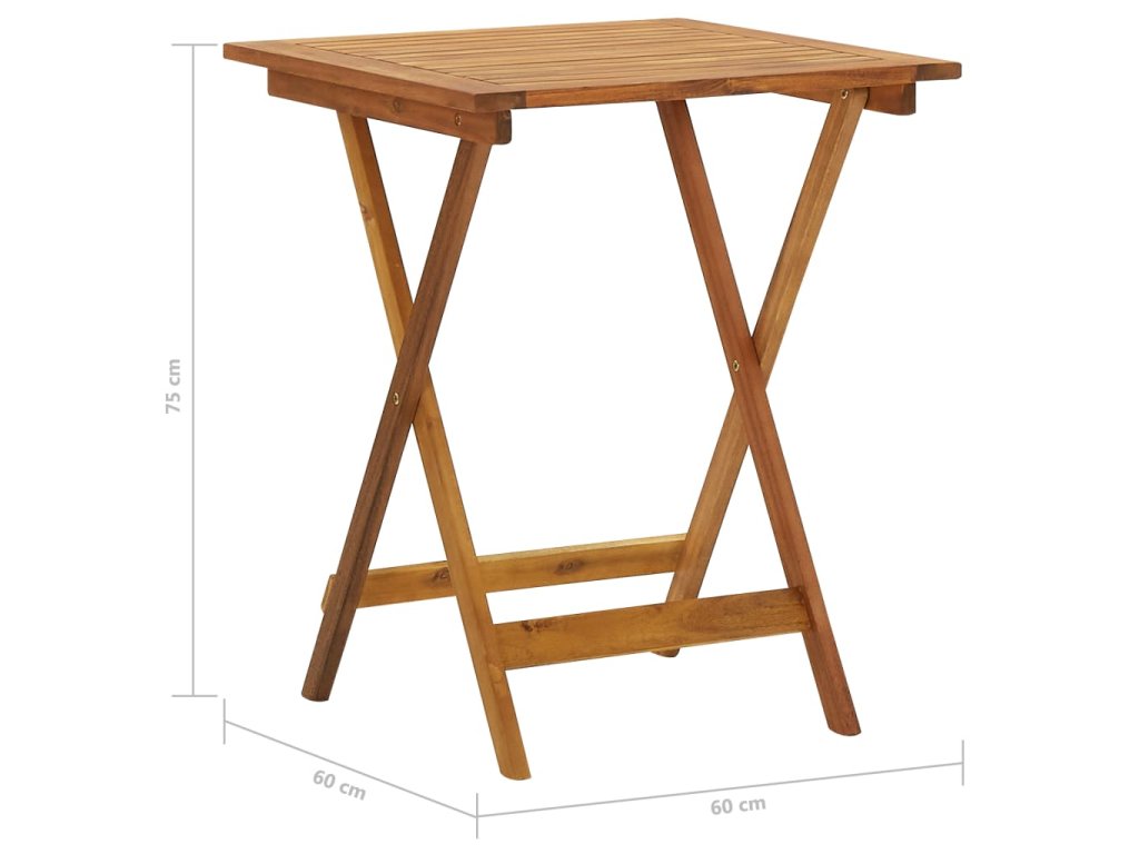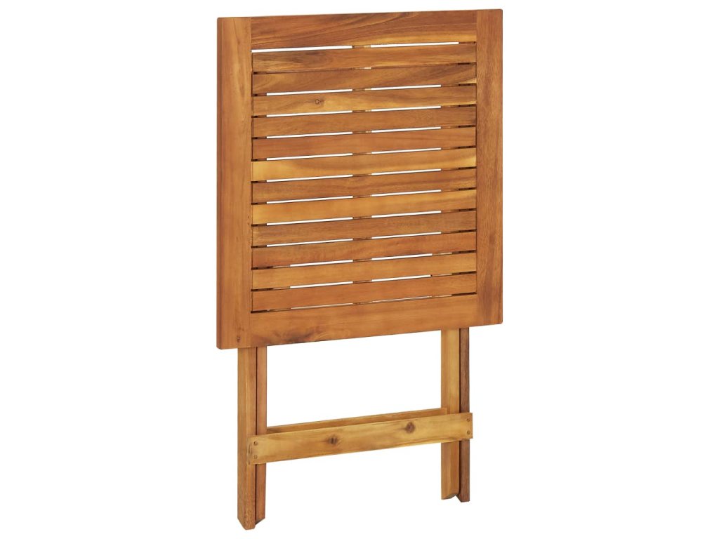 Táto jedálenská súprava je vyrobená z masívneho akáciového dreva, vďaka čomu je pevná a stabilná. Povrch s olejovým náterom sa ľahko čistí vlhkou handričkou. Jedálenský stôl a stoličky je možné sklopiť, aby ste ušetrili miesto, keď sa nepoužívajú.