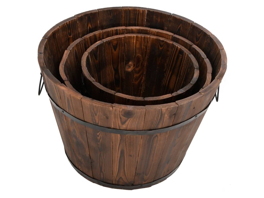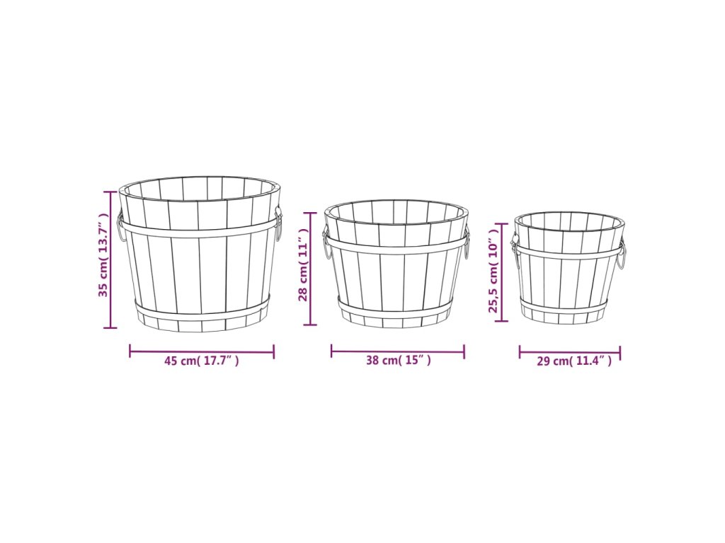 vidaXL 3-dielna súprava kvetináčov v tvare vedier masívna jedľa