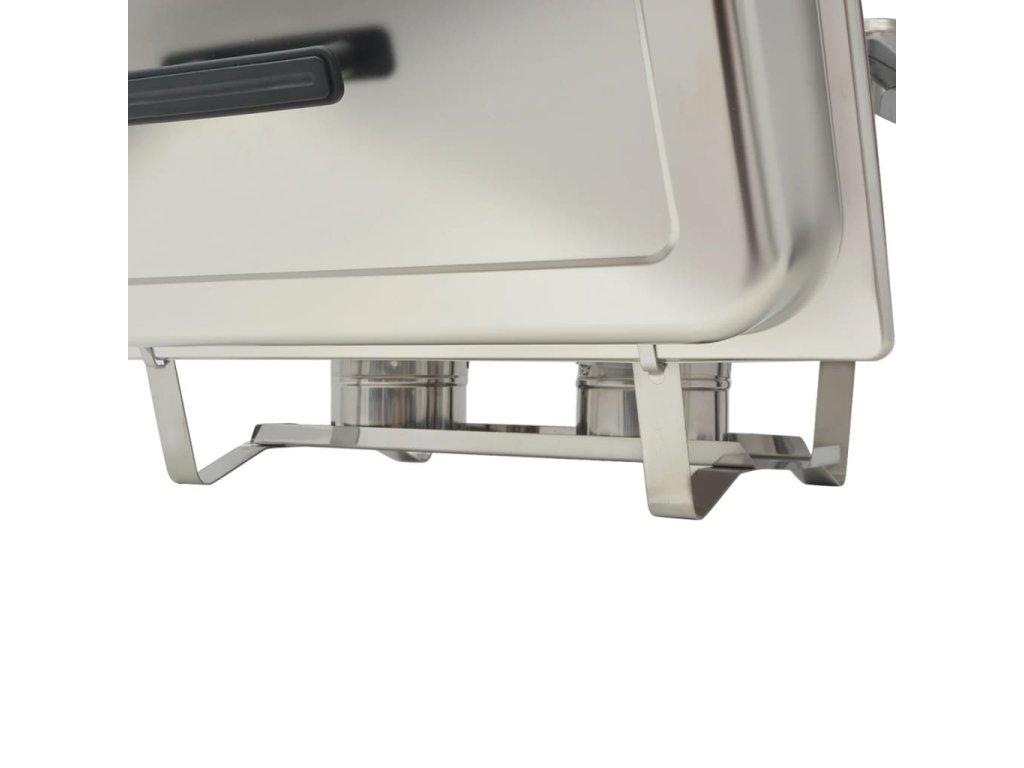 Súprava na ohrievanie pokrmov je vyrobená z vysokokvalitnej nehrdzavejúcej ocele, má pevnú konštrukciu a ľahko sa čistí. Nádoby na jedlo majú štandardné rozmery "Gastronorm"; čo umožňuje univerzálne použitie a širokú škálu kombinácií. Nádoby na vodu a potraviny majú zaoblené rohy, aby sa dali ľahko vyčistiť. Veká majú tepelne izolovanú rukoväť a vďaka 2 zabudovaným háčikom sa dajú pohodlne umiestniť na stojan. Pomocou 2 rukovätí na stojanoch môžete ohrievače ľahko premiestniť. Stojany sú vybavené poličkou na umiestnenie horákov.