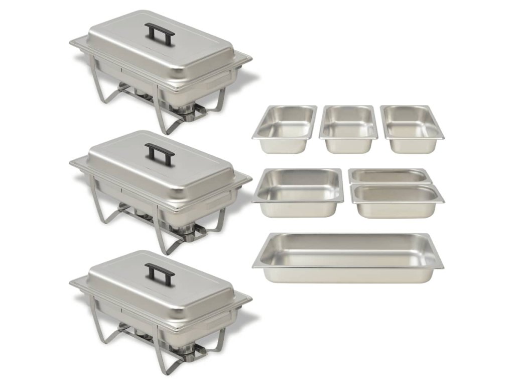vidaXL 3-dielna súprava nádob na ohrievanie jedla, nehrdzavejúca oceľ