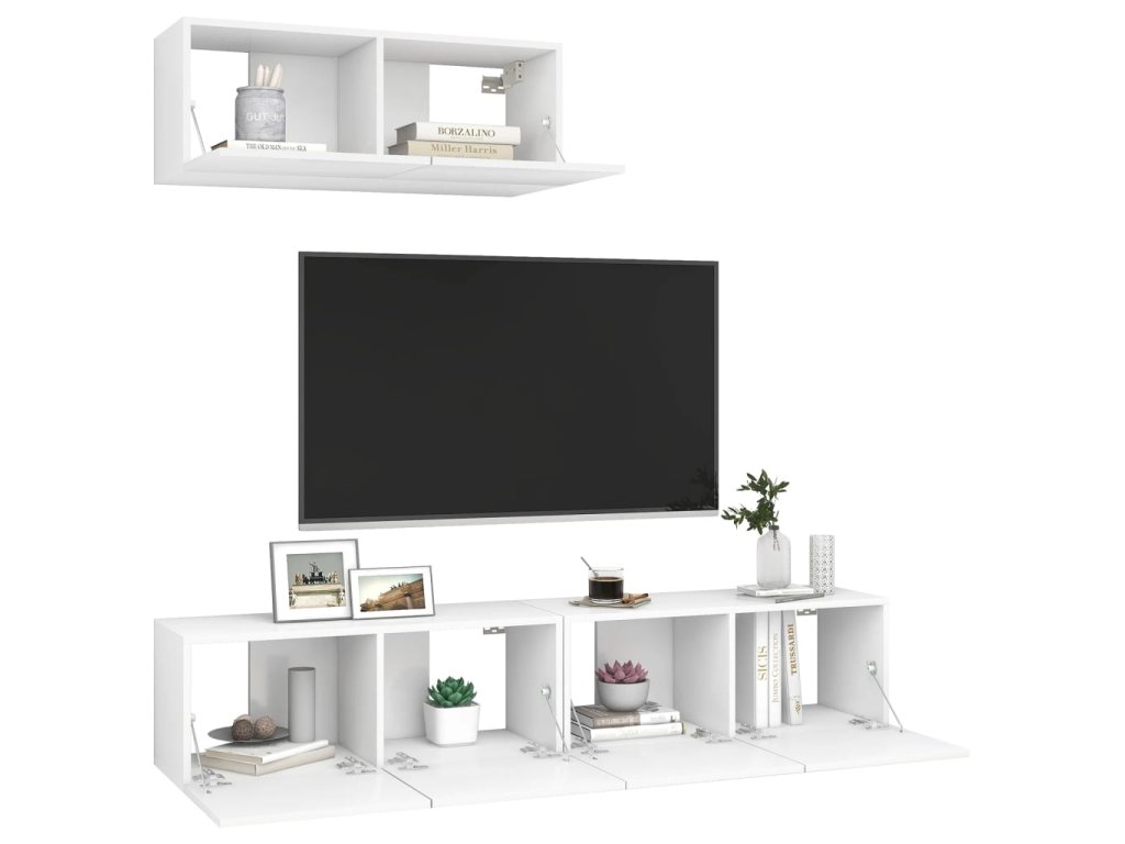 Táto sada závesných TV skriniek je vybavená veľkým úložným priestorom na uloženie rôznych predmetov a vo vašej domácnosti bude praktickým a pútavým doplnkom.